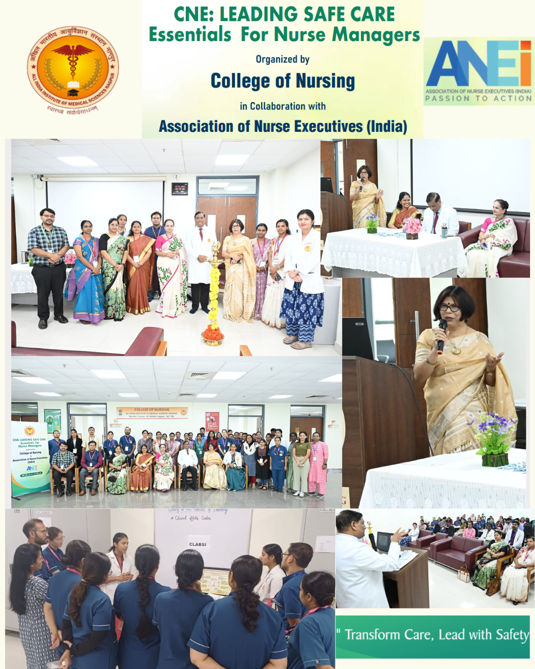 • College of Nursing, AIIMS Nagpur in collaboration with Association of Nurse Executives, India on Leading Safe Care: Essentials for Nurse Managers