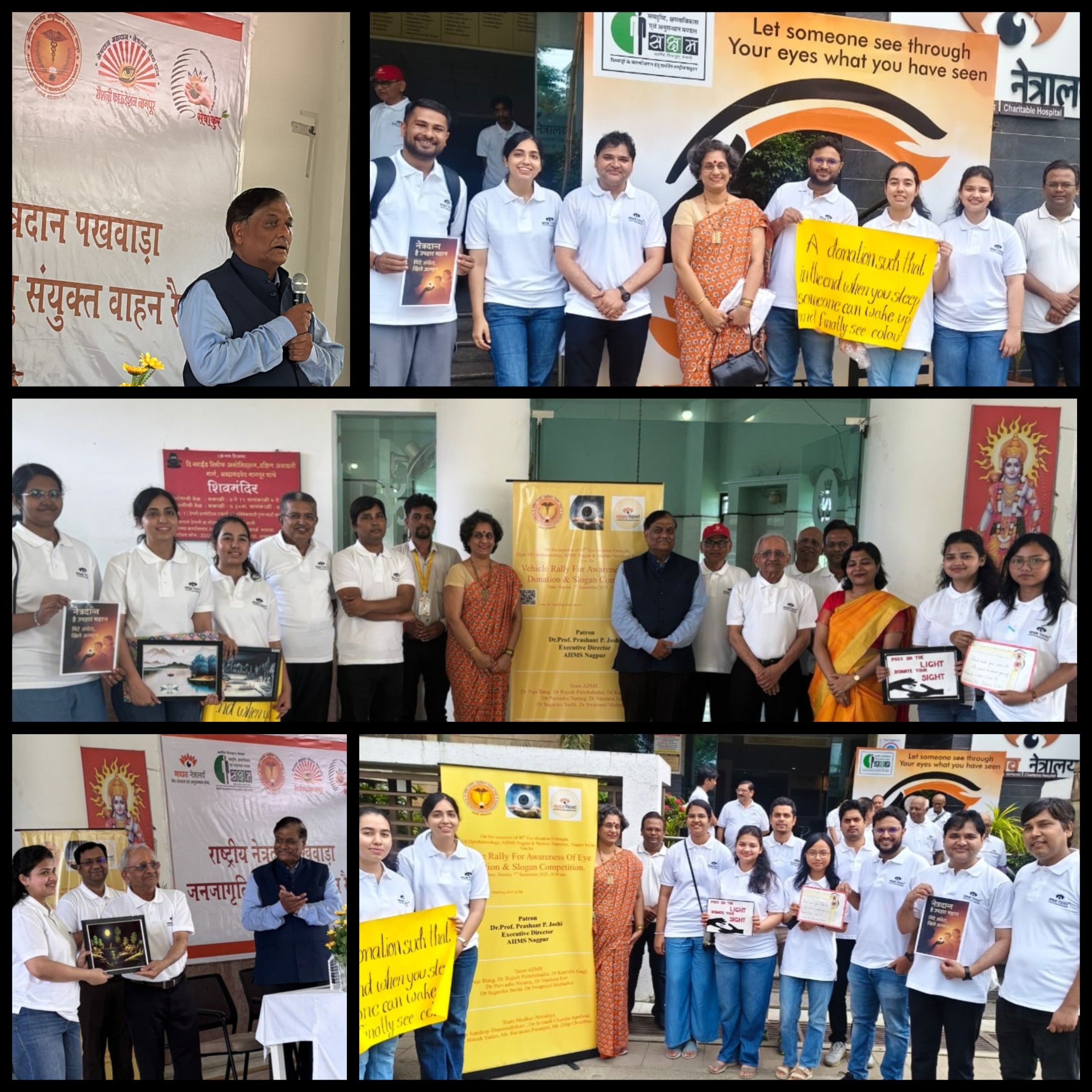 Dr. Prashant P. Joshi, Executive Director and CEO, AIIMS Nagpur, graced the occasion as the Chief Guest. The program also featured a thought-provoking awareness skit performed by children, aimed at busting myths surrounding eye donation and encouraging the community to come forward for this noble cause, in addition to a slogan contest for placards used for awareness by PGs of Ophthalmology AIIMS, Nagpur.