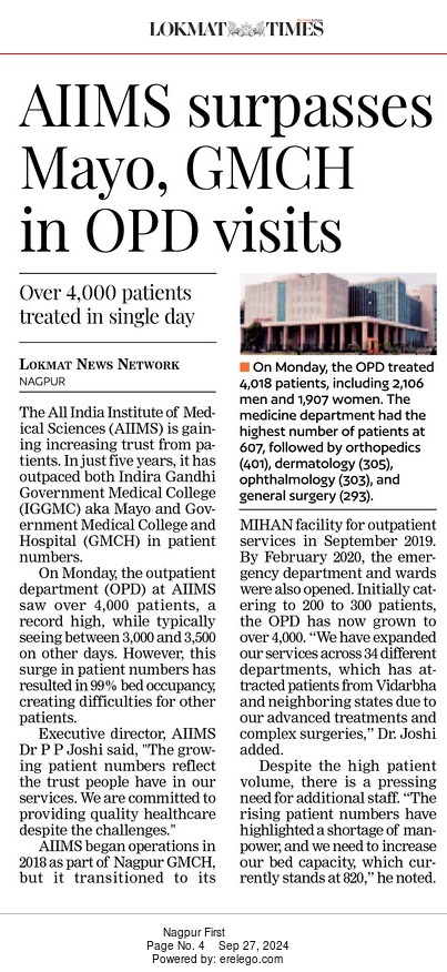 • In a rapidly evolving digital landscape, AIIMS Nagpur, under the dynamic leadership of the Executive Director Dr Hanumantha Rao, has emerged as a trailblazer in digitalizing the workplace for enhanced efficiency.
