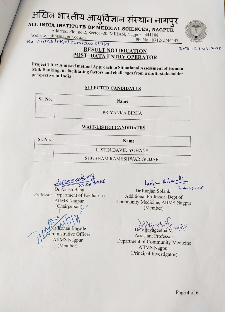 If you are not able to access the Google Form, kindly email your complete application form along with all necessary documents to dcmprojectsaiimsngp@gmail.com